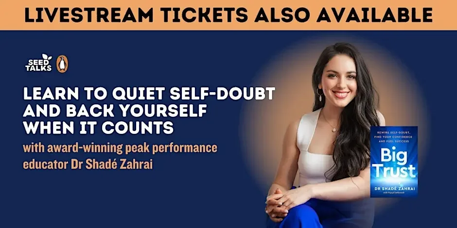 Award-winning peak performance educator Dr Shadé Zahrai explains how self-doubt works, why it holds us back, and most importantly, how to break free from it. Drawing on cutting-edge research and real-world applications from her new book ‘Big Trust’, Zahrai will equip you with practical tools to build genuine self-trust and unlock your full potential.
